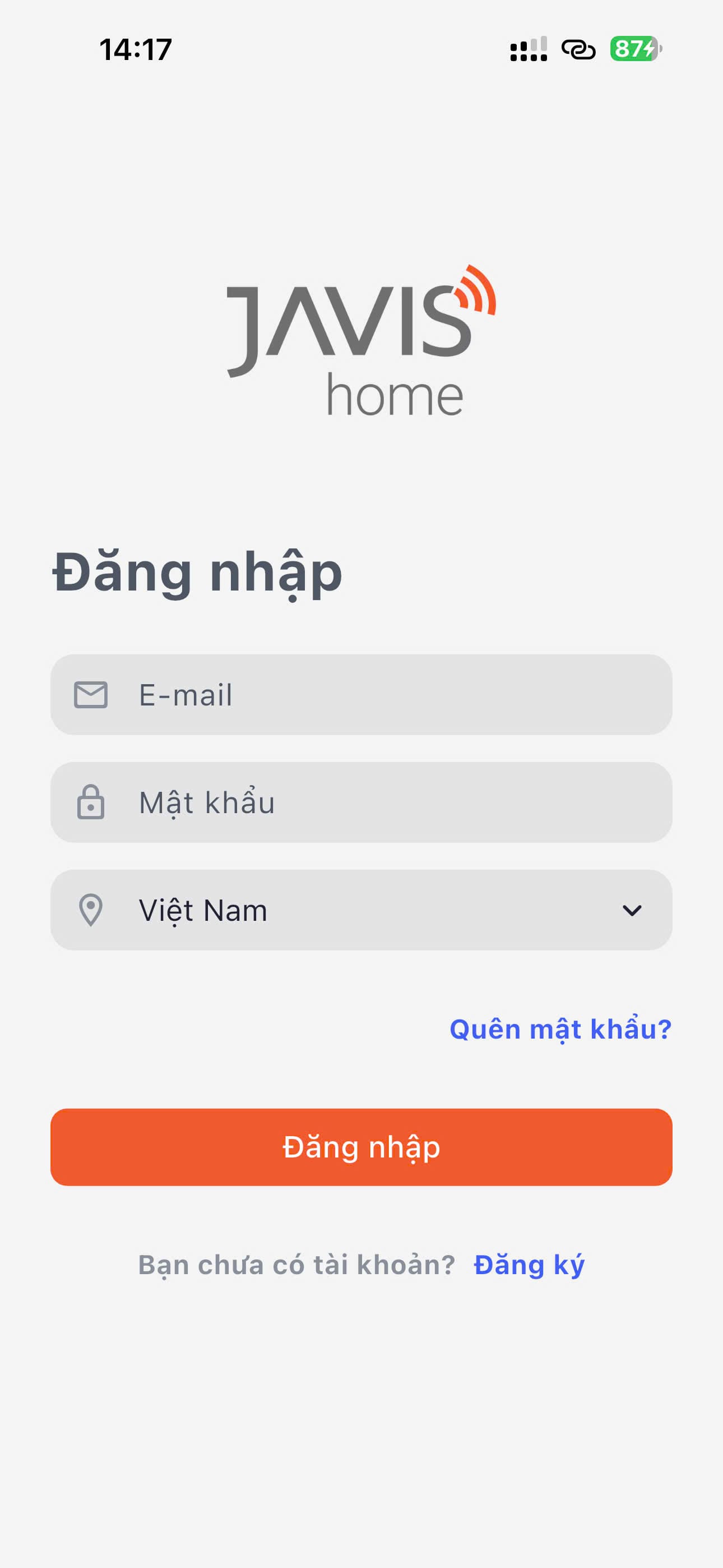 Không thể dùng tài khoản ứng dụng JAVIS HOME đăng nhập vào ứng dụng JAVIS SMART, do đó, chúng ta phải đăng ký tài khoản JAVIS SMART mới, sau đây là cách thực hiện: