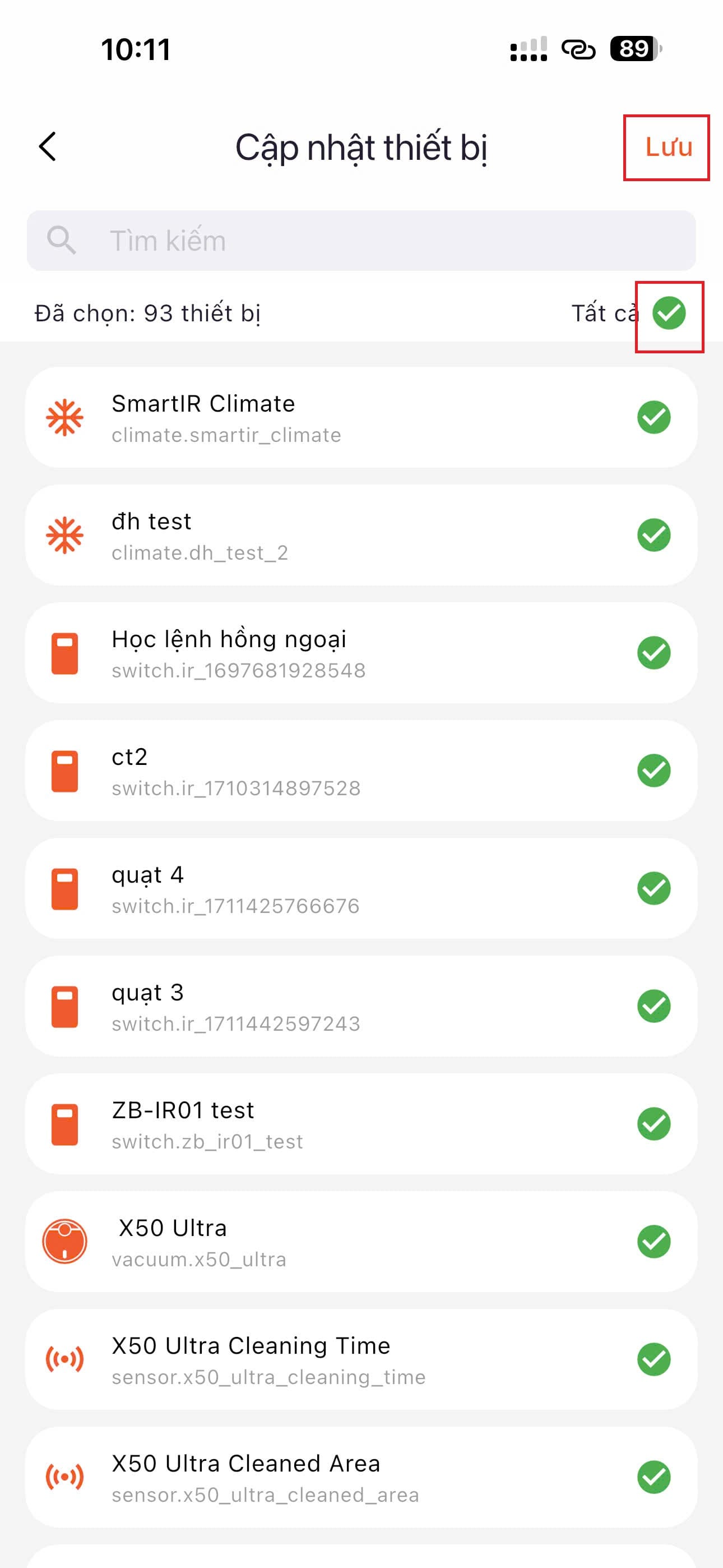 - Chọn tích, hoặc bỏ tích vào những thiết bị bạn muốn cập nhật lên app.