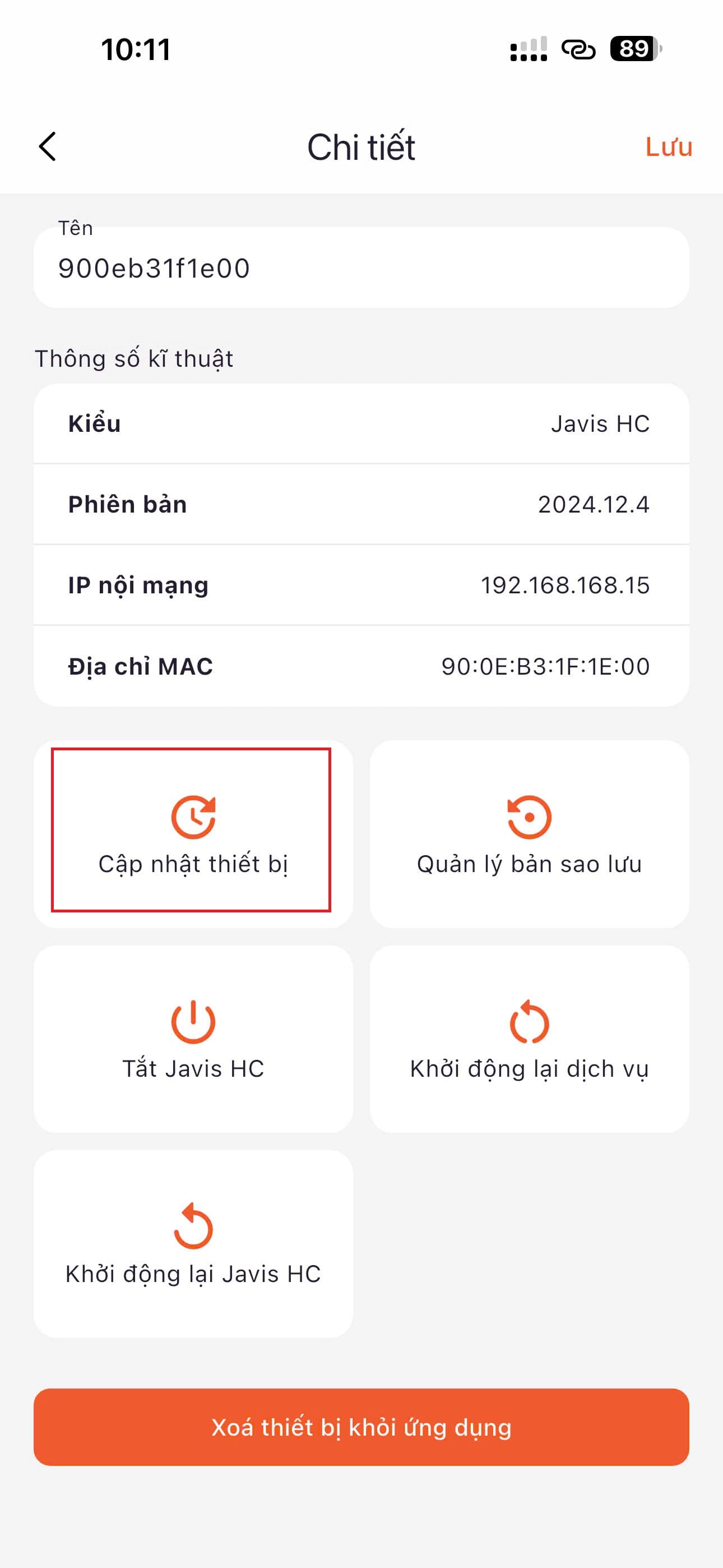 Cập nhật thiết bị mới từ Javis HC vào ứng dụng Javis Smart