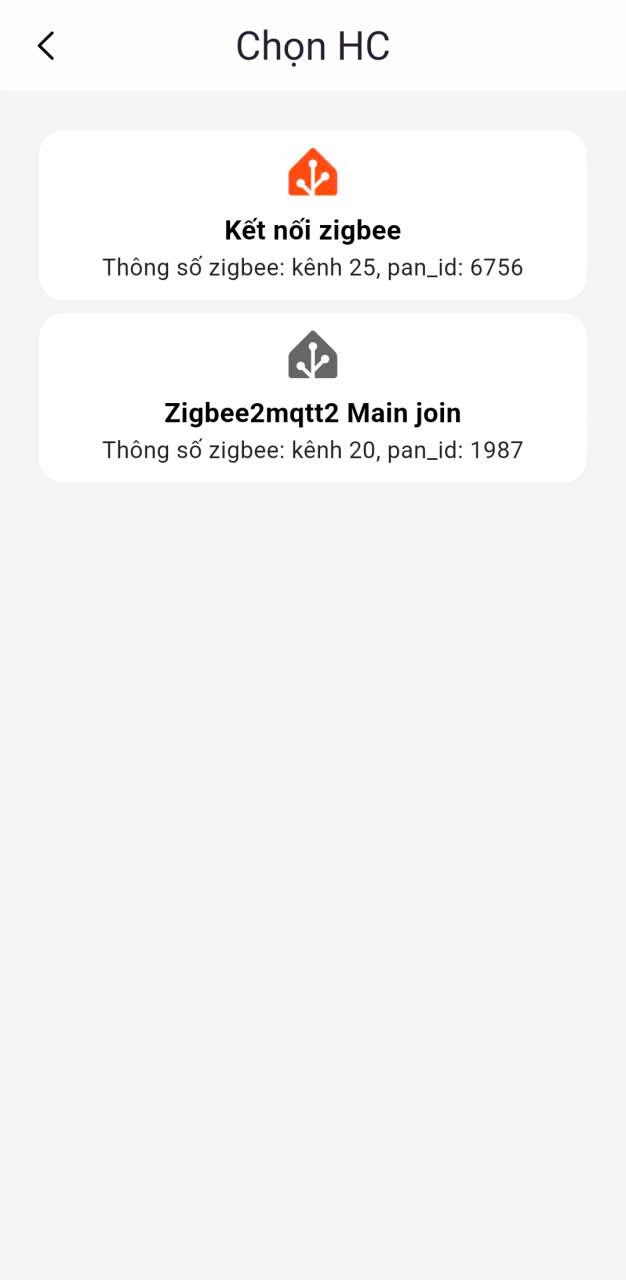 Trên app Javis Smart, để kết nối thiết bị zigbee vào bộ HC phụ mini nào thì trên menu "Kết nối thiết bị zigbee" sẽ chọn bộ HC tương ứng.
