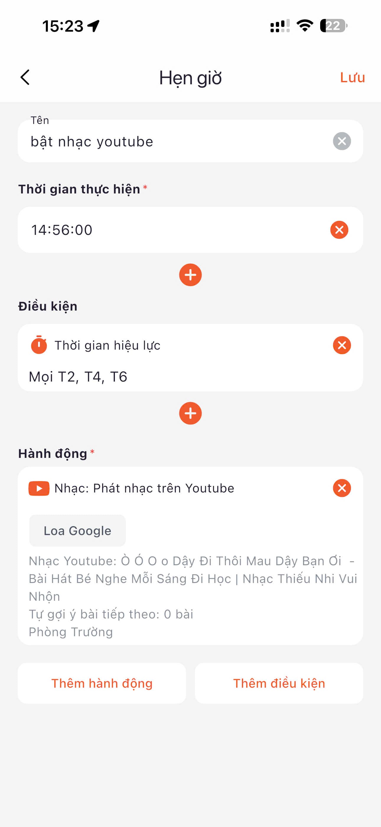 Như vậy bạn đã thiết lập xong tự động hóa thông minh phát nhạc trên youtube. Hàng ngày lúc 7h sáng nhạc sẽ tự động bật bài hát liên quan đến "nhạc thư giãn" từ Youtube và sẽ tự tắt sau khi phát 15 phút.