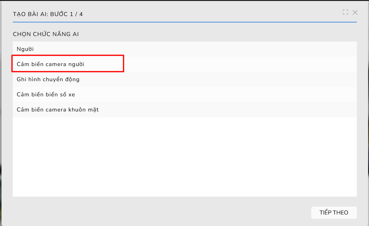 Bước 1/4: Chọn "Cảm biến camera người" để dùng mục đích phát hiện người