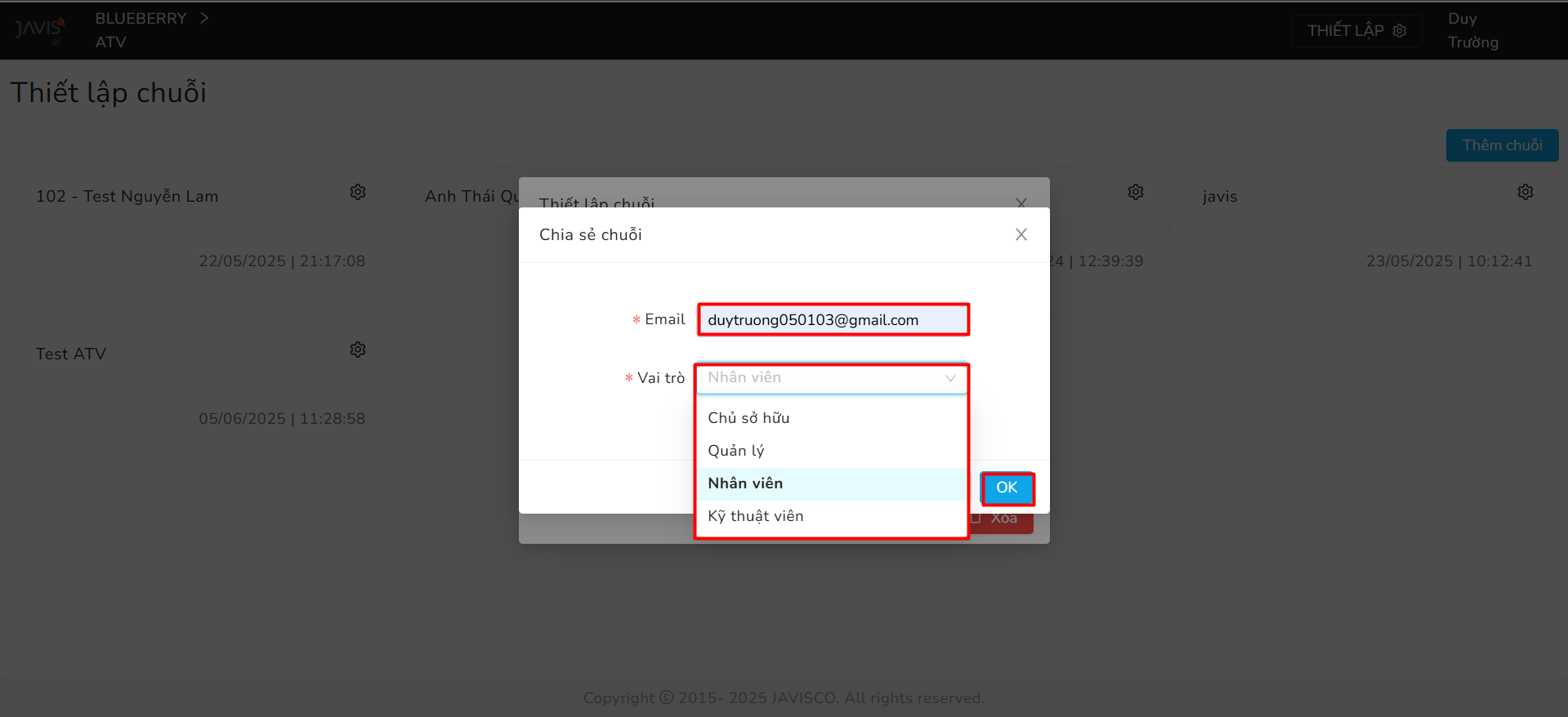 1- Thiết lập chuỗi : Thêm chuỗi : tạo thêm chuỗi nhà mình hoặc vp…