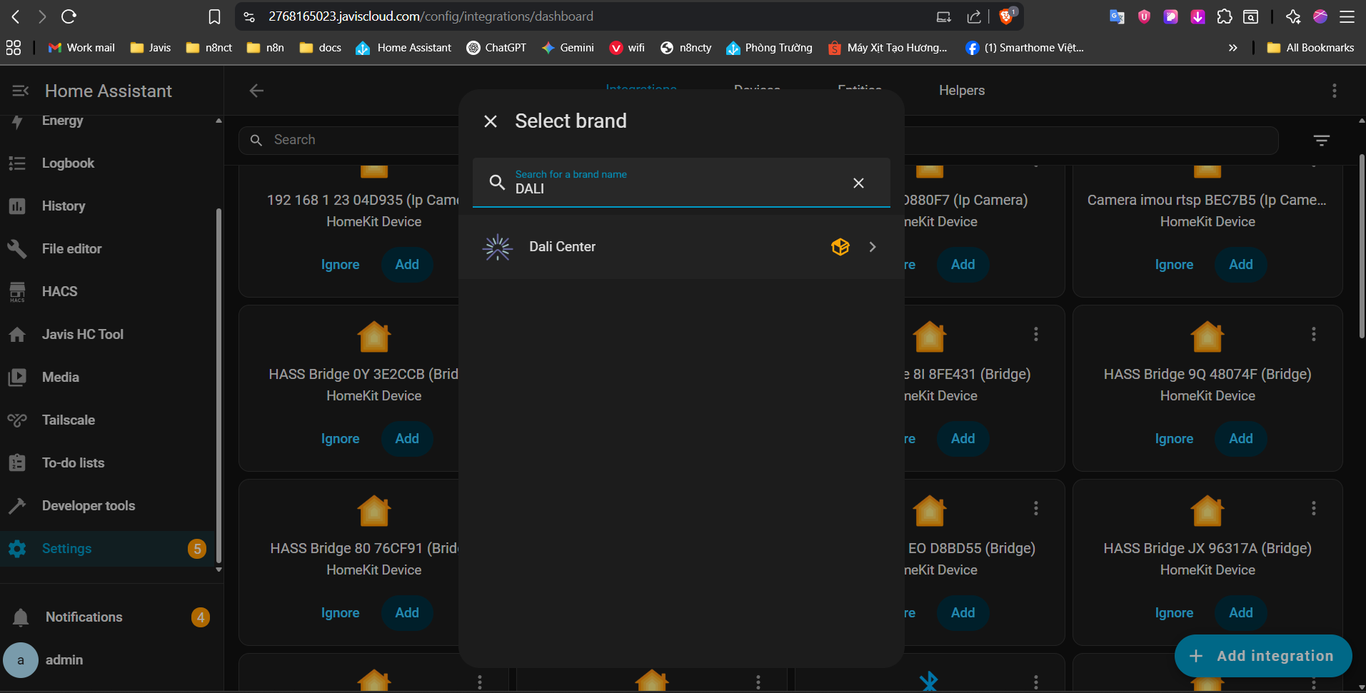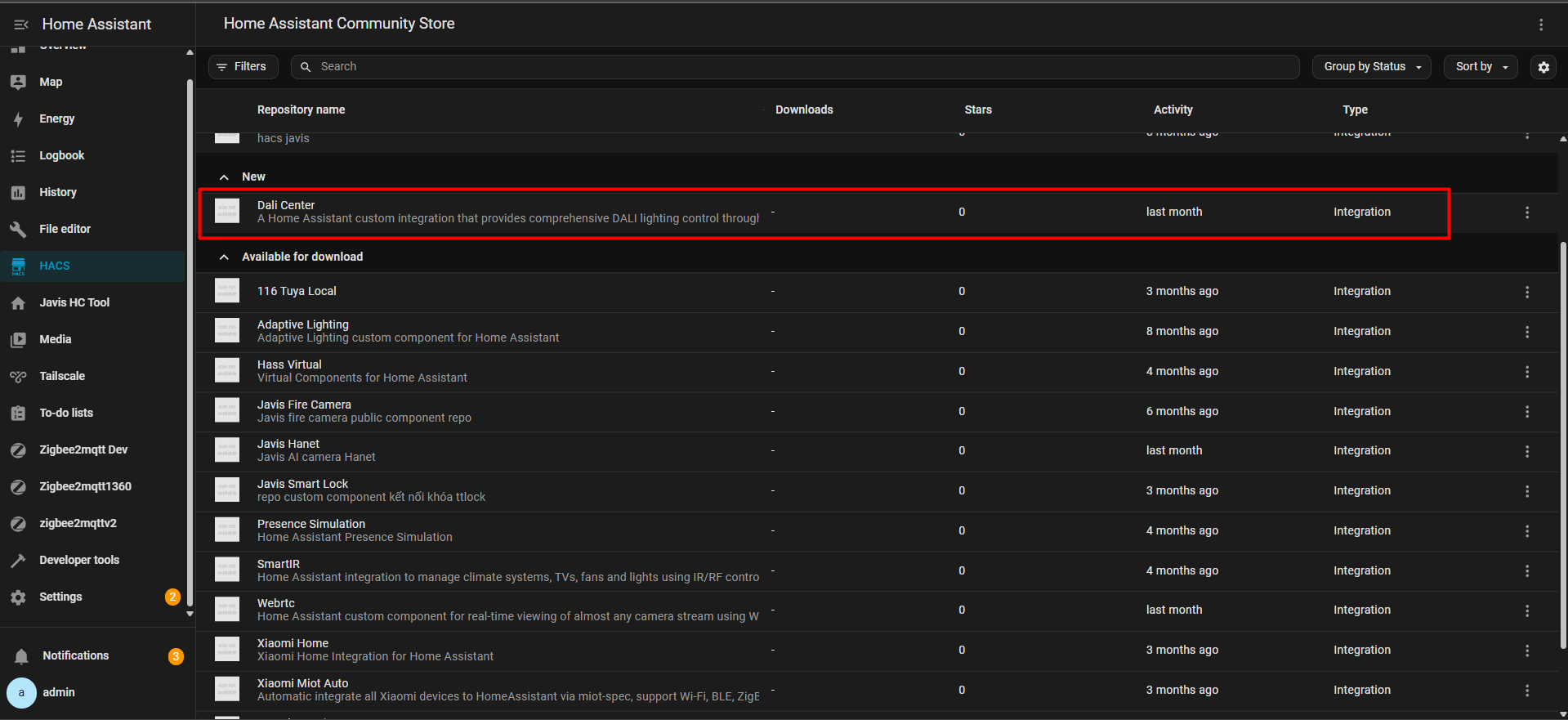 B2. Cài đặt tích hợp DALI Center vào Home Assistant thông qua HACS (Home Assistant Community Store).