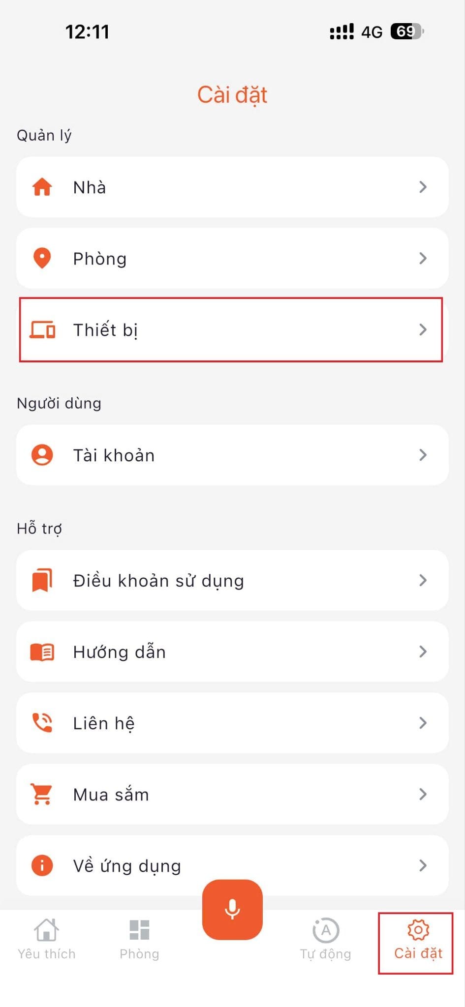 Cài đặt ->Thiết bị ->Chọn thiết bị HC->Cập nhật thiết bị->Tích chọn các đèn->Lưu