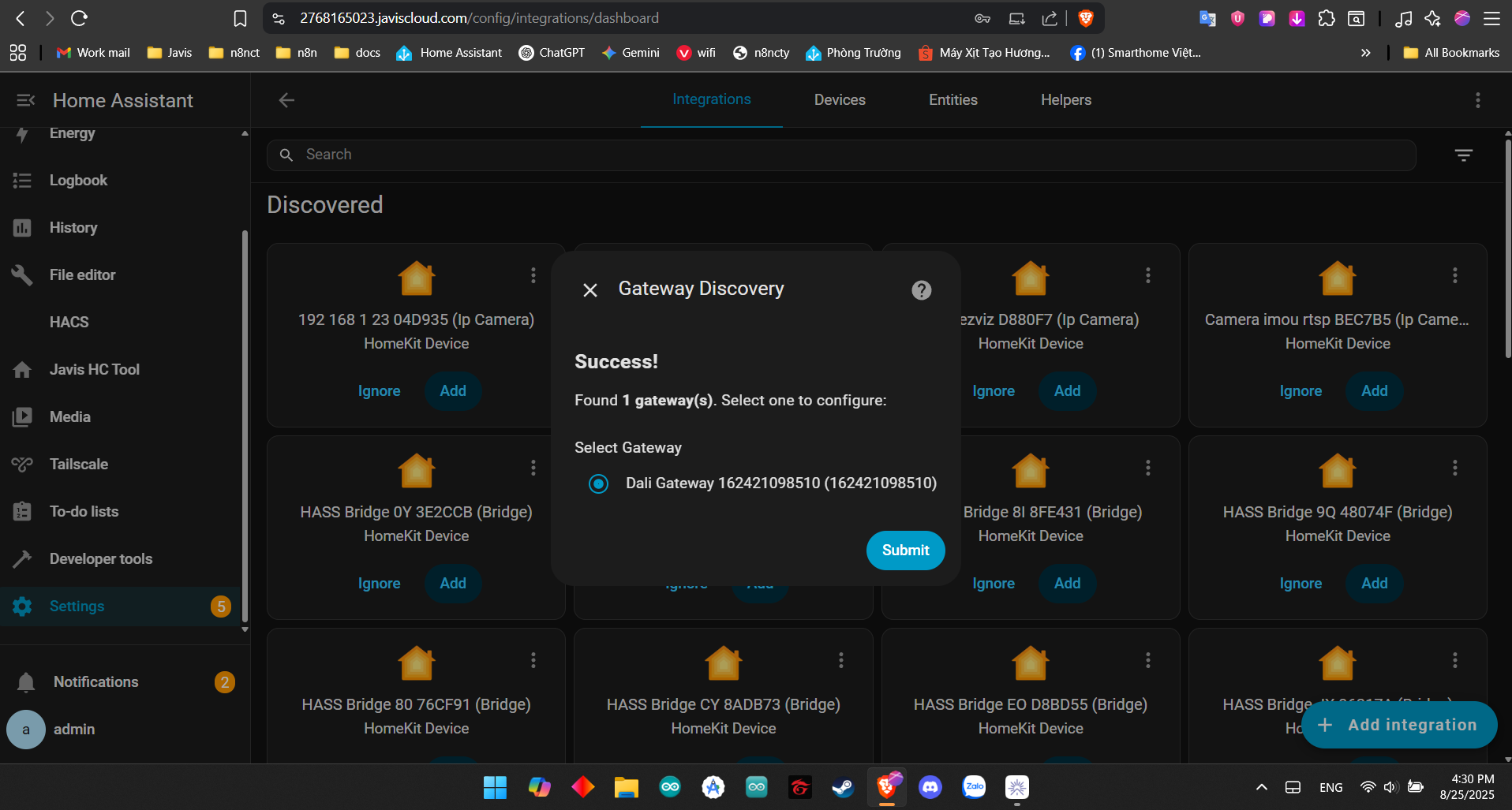 Home Assistant sẽ tự động tìm kiếm gateway trên mạng của bạn.( Làm theo hướng dẫn)