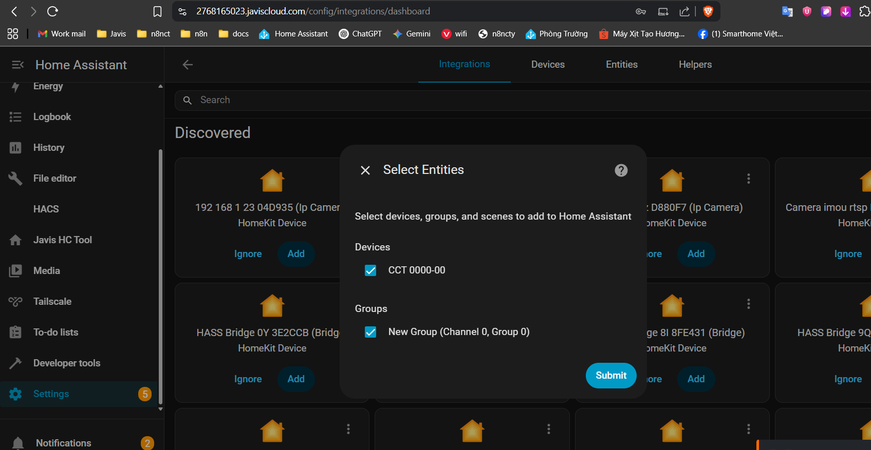 Kết nối và cấu hình: Sau khi cài đặt, bạn sẽ thực hiện các bước cấu hình trong giao diện của Home Assistant: