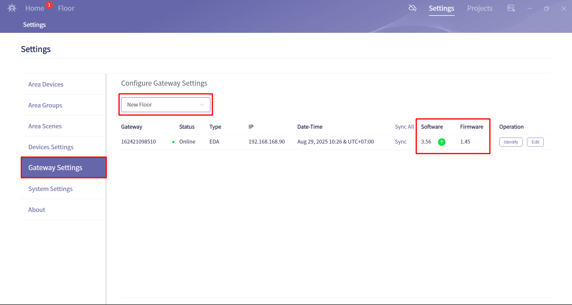 - Chọn Gateway Settings ->Chọn floor -> Gateway sẽ hiện ra