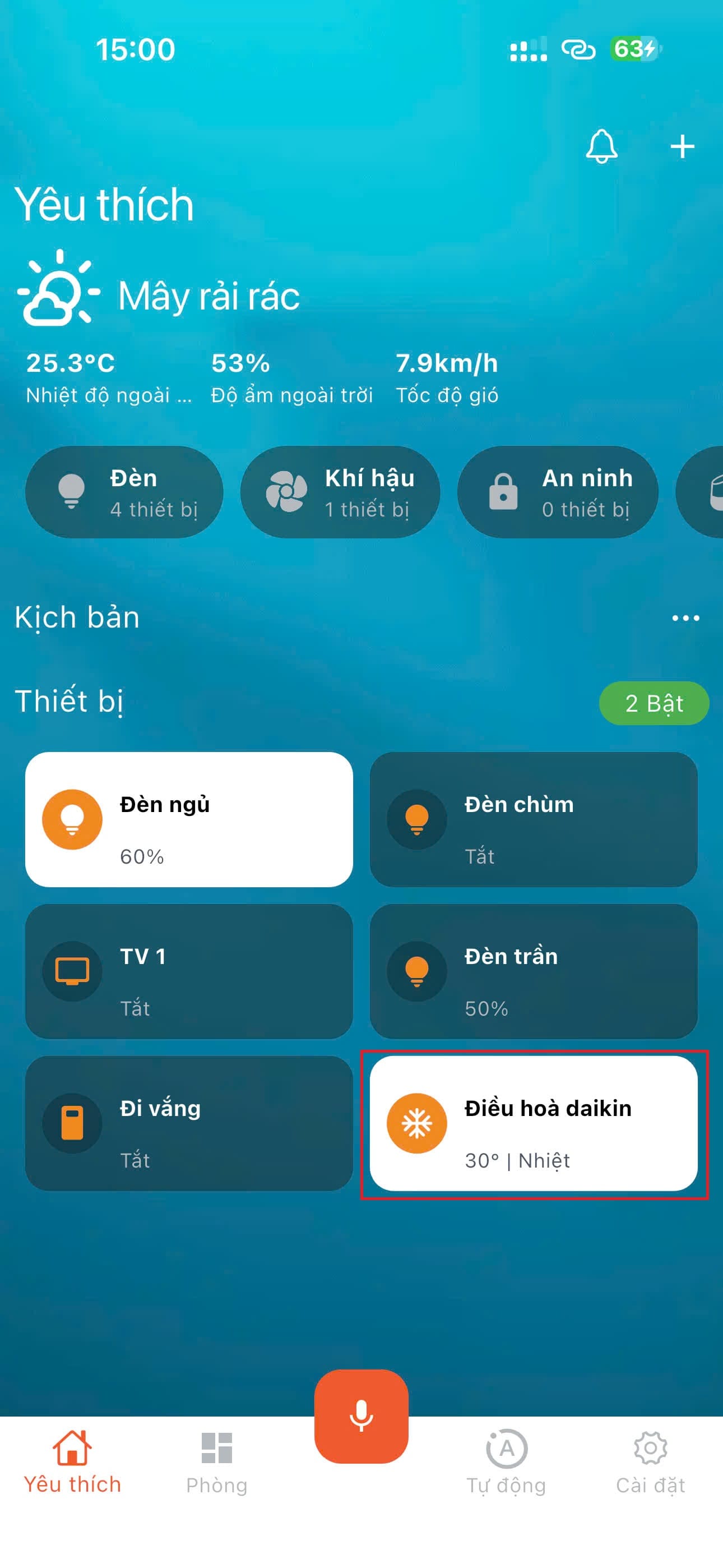 - Sau khi kết nối vào xong, điều hòa bạn vừa thêm sẽ xuất hiện ở màn hình "Tất cả" trong Tab "Phòng".