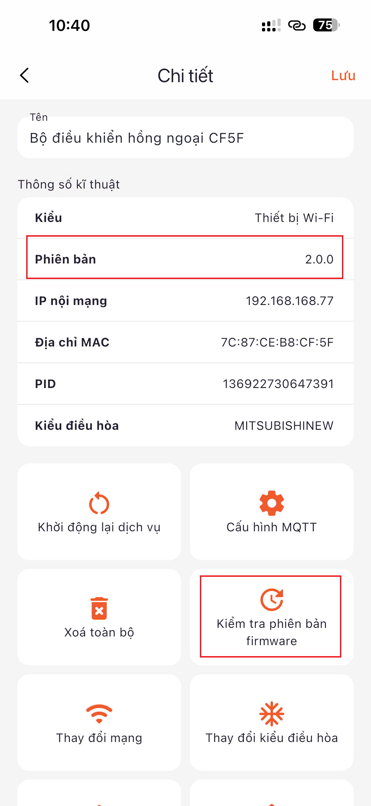 -> chọn "Kiểm tra phiên bản firmware"