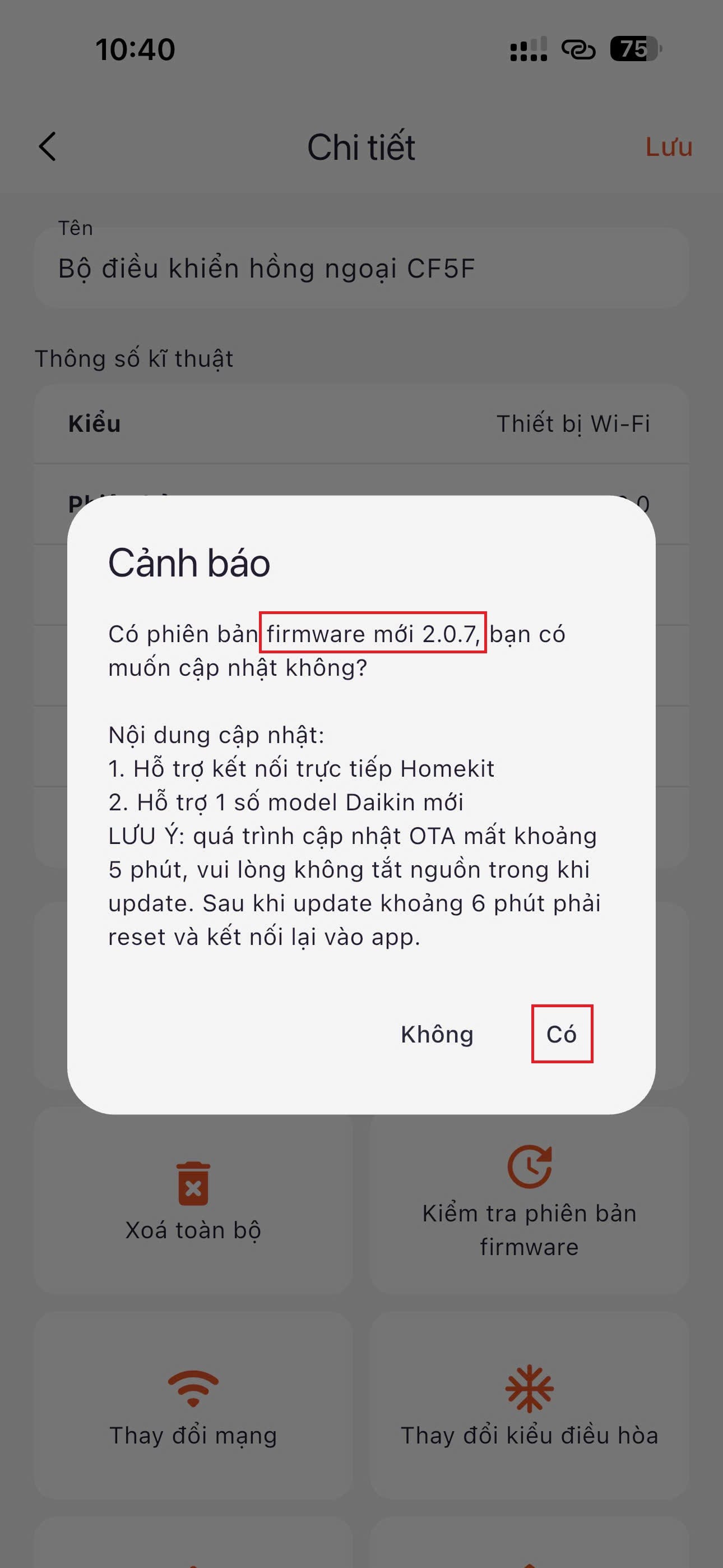 B1: Kiểm tra phiên bản firmware hiện tại ( mới nhất là 2.0.7)
