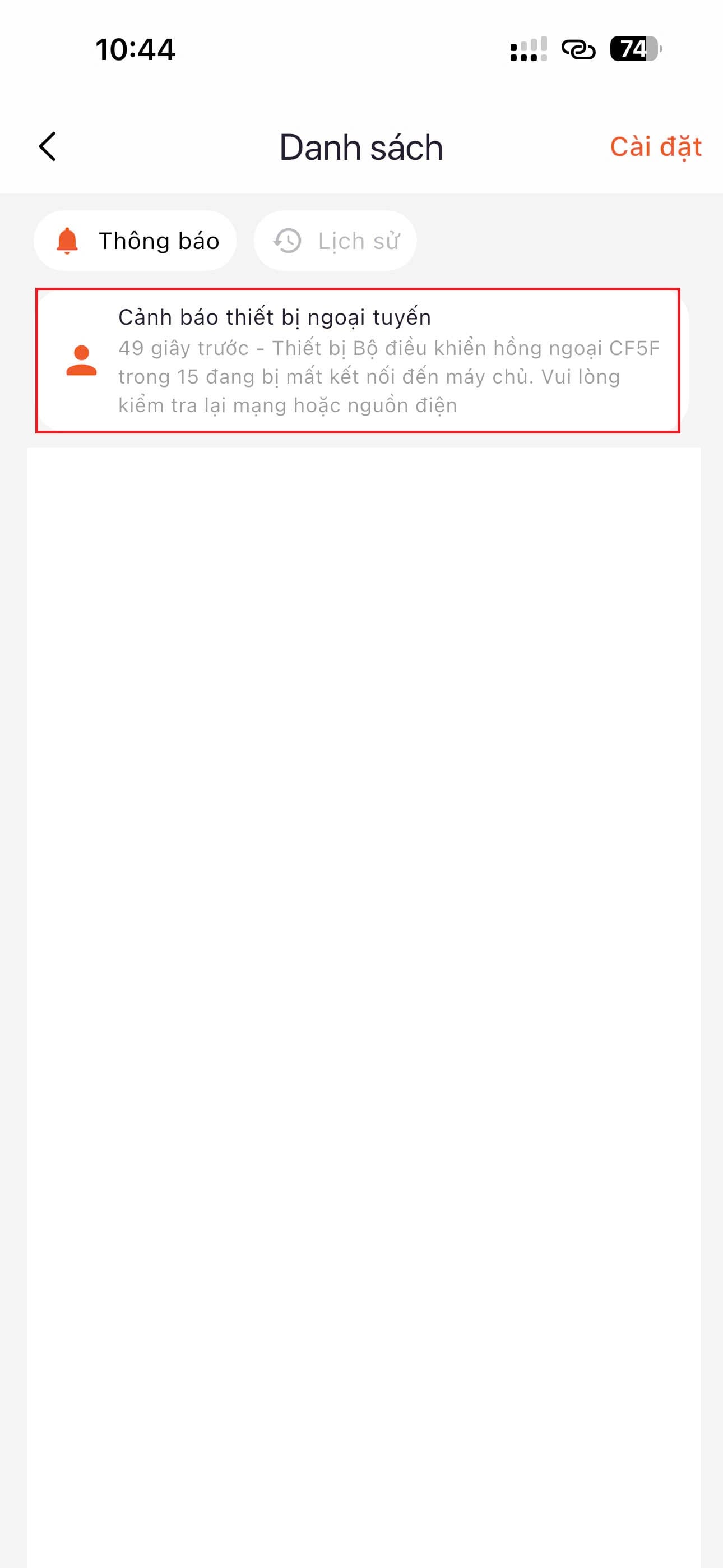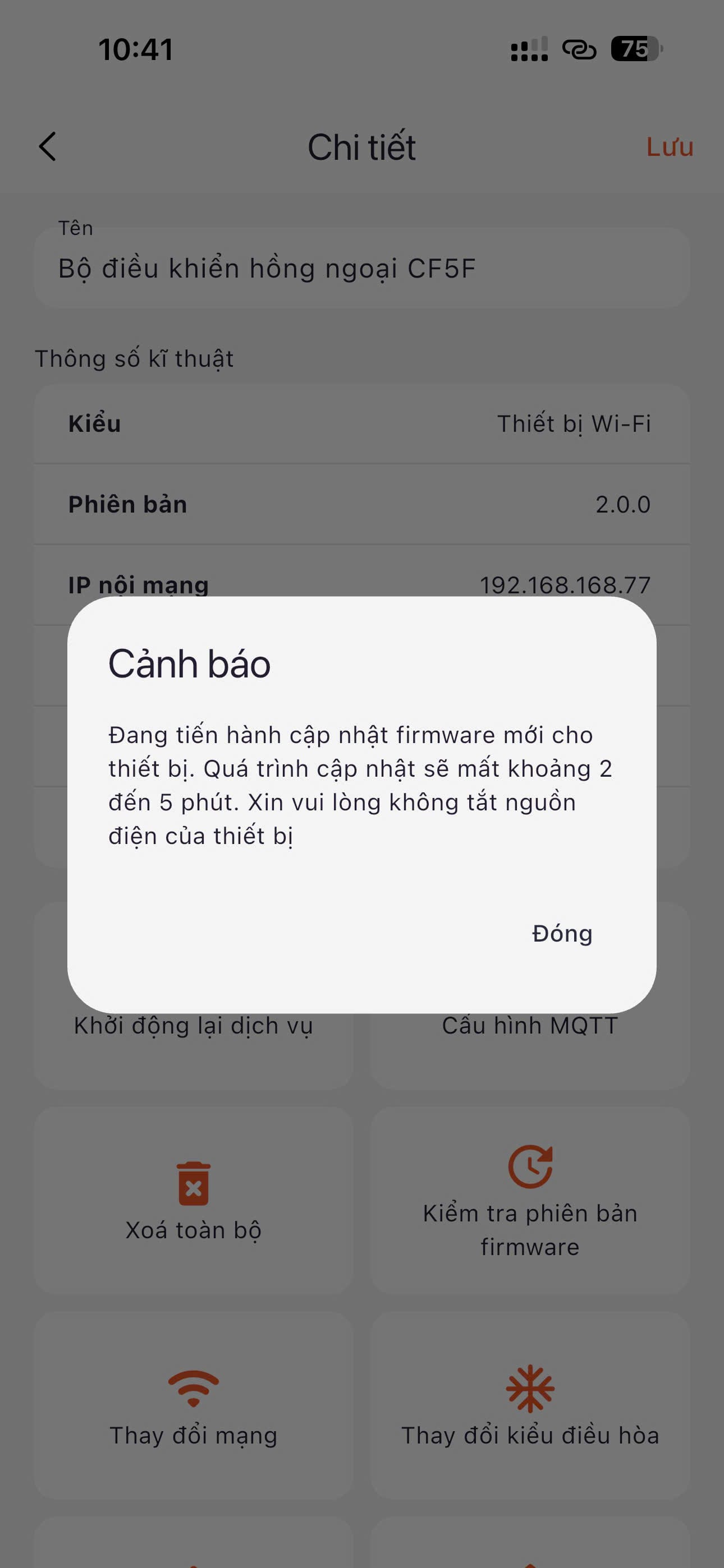 "Thiết bị bộ điều khiển hồng ngoại ... mất kết nối" là thiết bị đã cập nhật thành công