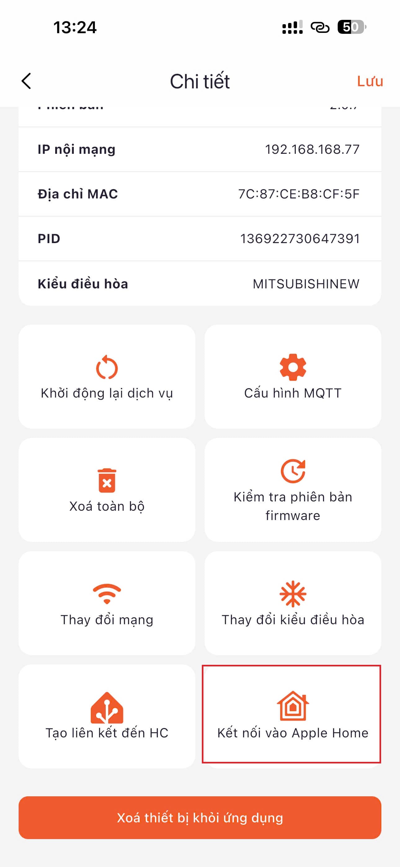- Sau khi kết nối vào xong, điều hòa bạn vừa thêm sẽ xuất hiện ở màn hình "Tất cả" trong Tab "Phòng".