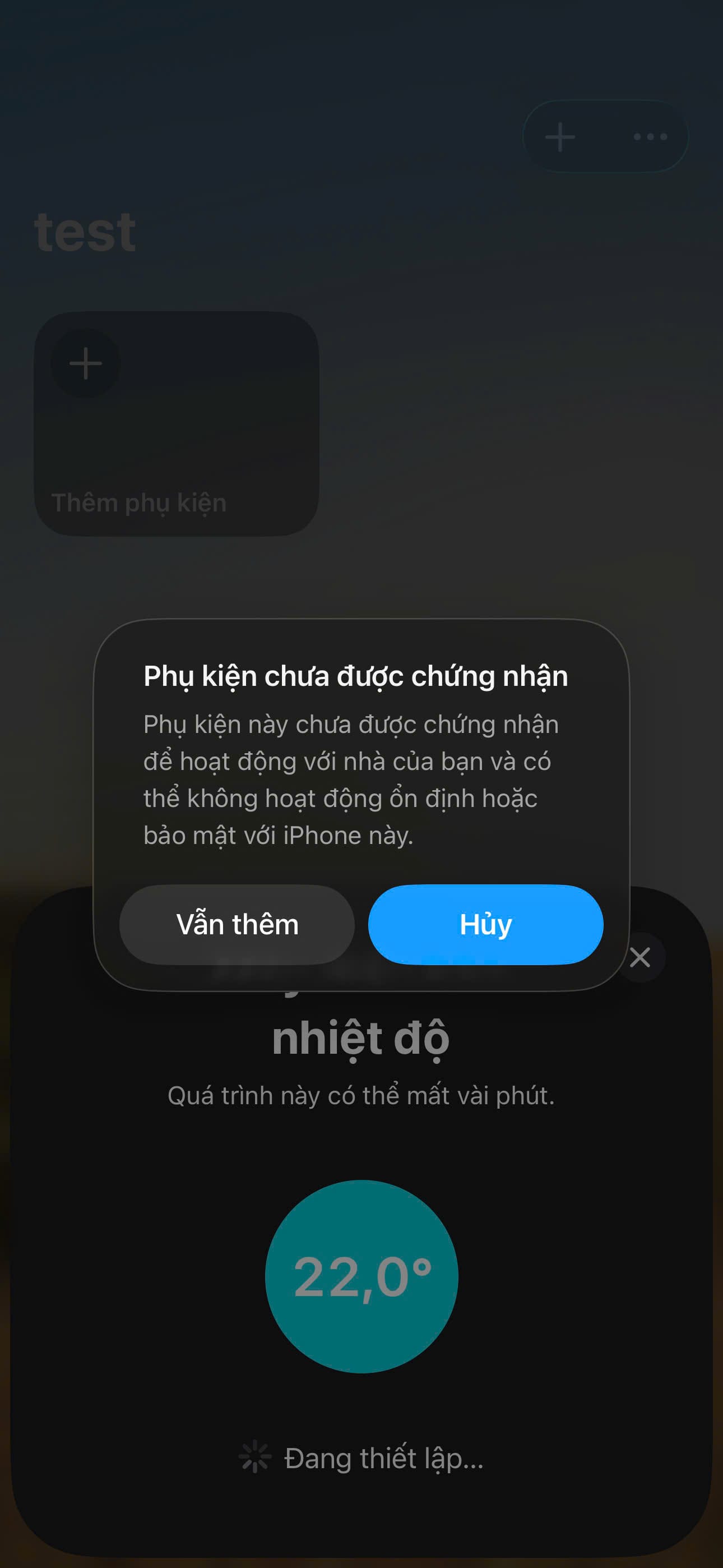 - Nếu không thể kết nối JAVIS HC với homekit tại bước "Thêm phụ kiện"(Có thể gặp lỗi khi đã liên kết vào 1 lần và sau đó xóa liên kết). Hãy thao tác lại bước 1 và tiến hành kết nối lại.