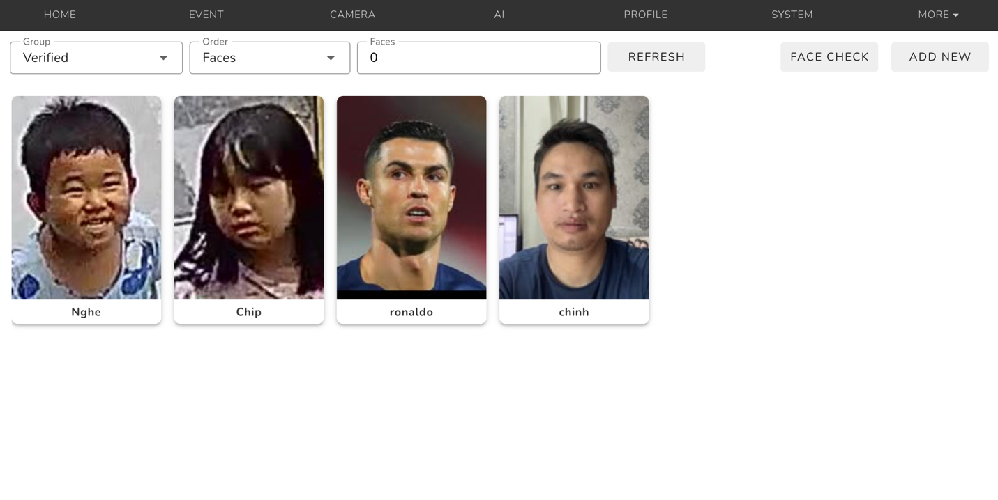 Bấm nút ADD NEW để thêm khuôn mặt (faceID) mới.