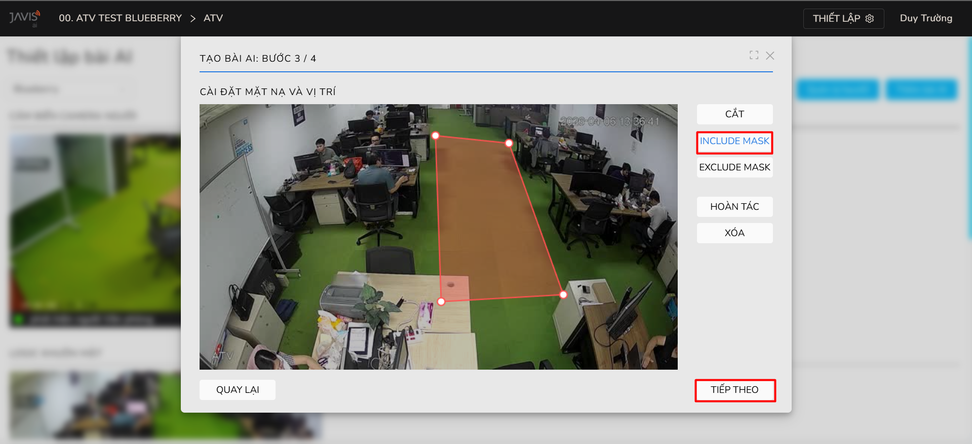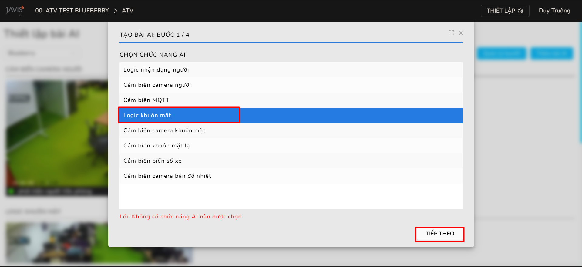 Vào trang cấu hình AI trên hệ thống cloud smartcam của JAVI. Chọn menu Thiết lập => Chọn Thiết lập Bài AI