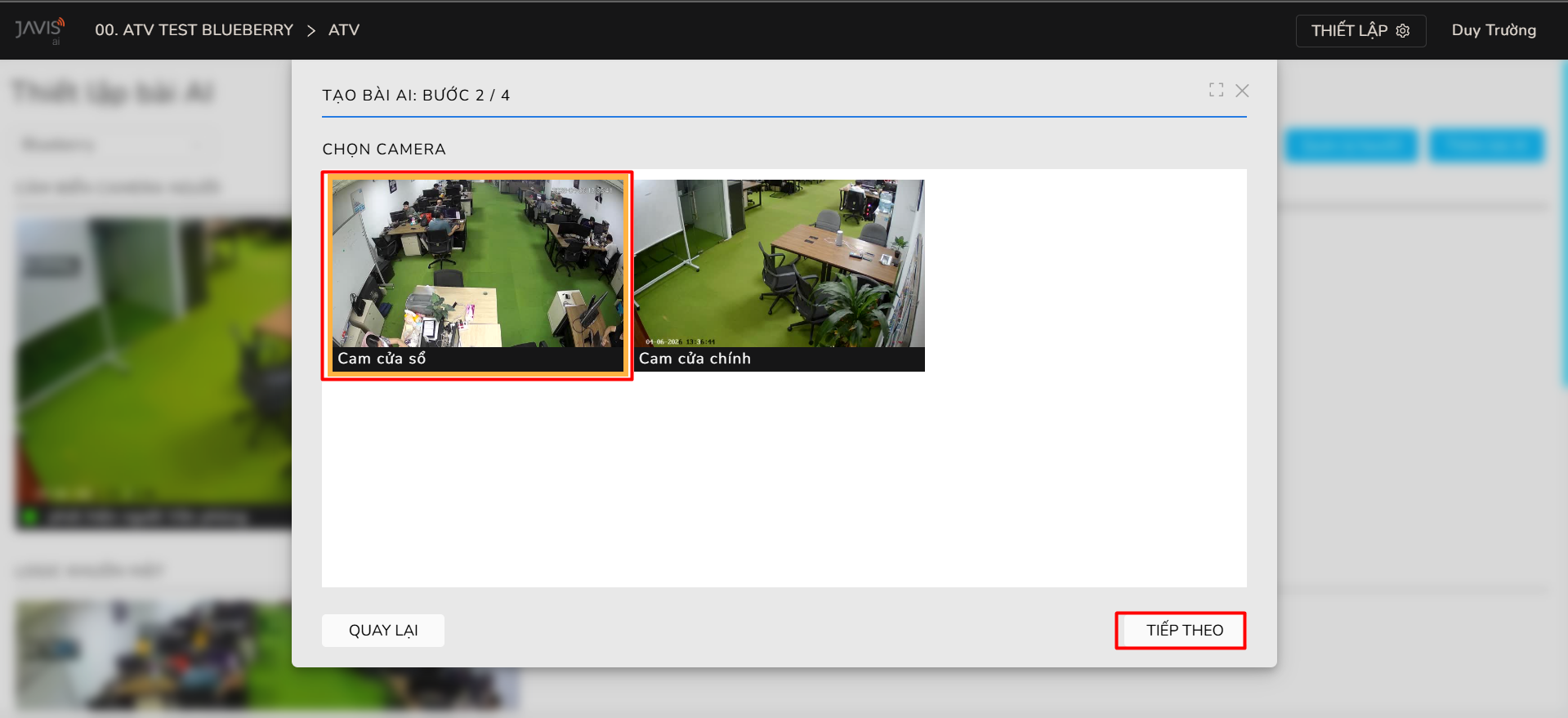 B2.2: Chọn camera nhận diện khuôn mặt từ danh sách các camera đã thêm trước đó.
