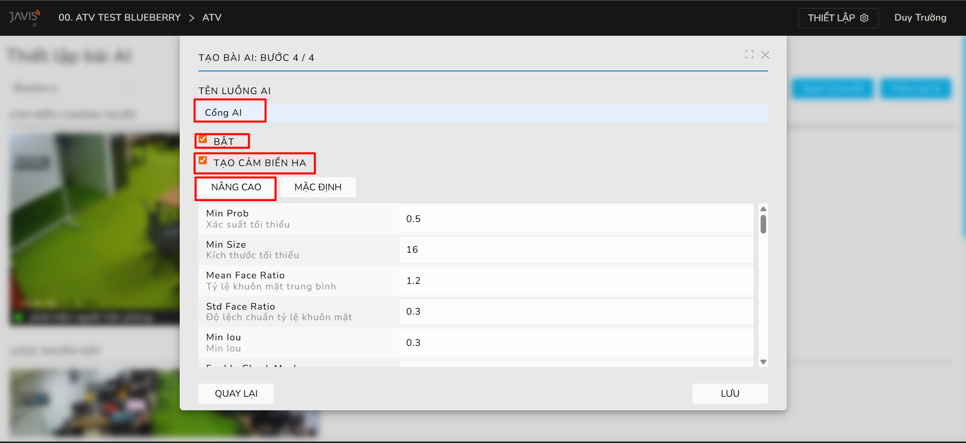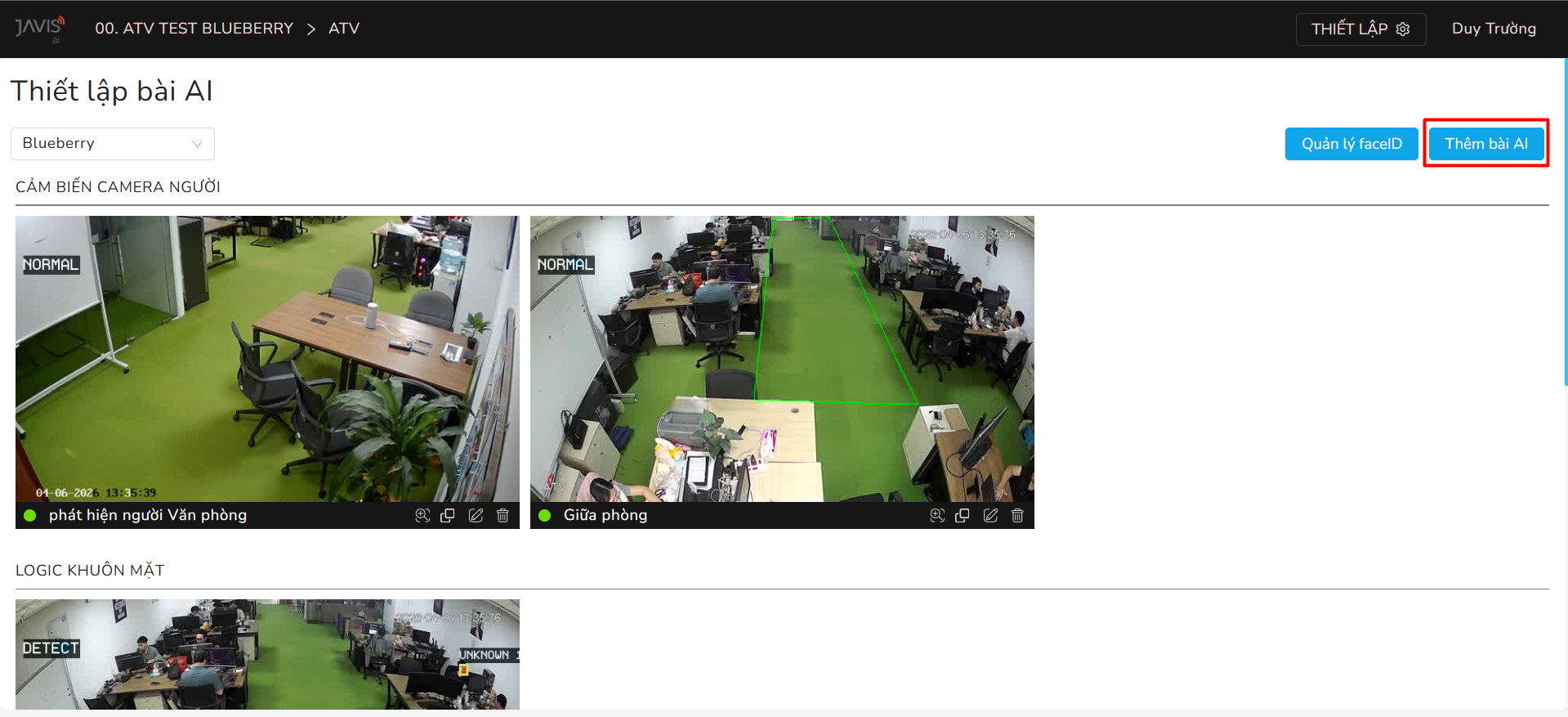 Sau khi đã tạo các profile (FaceID) cho từng người, để tiến hành nhận dạng thì cần tạo các bài AI nhận dạng khuôn mặt theo camera cụ thể.