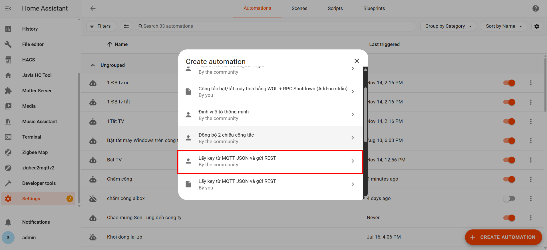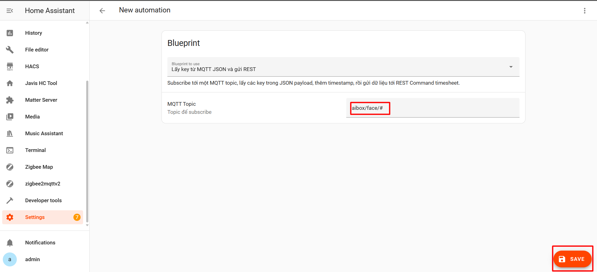B5: Tạo Automation "Lấy key từ MQTT JSON và gửi REST" bằng blueprint