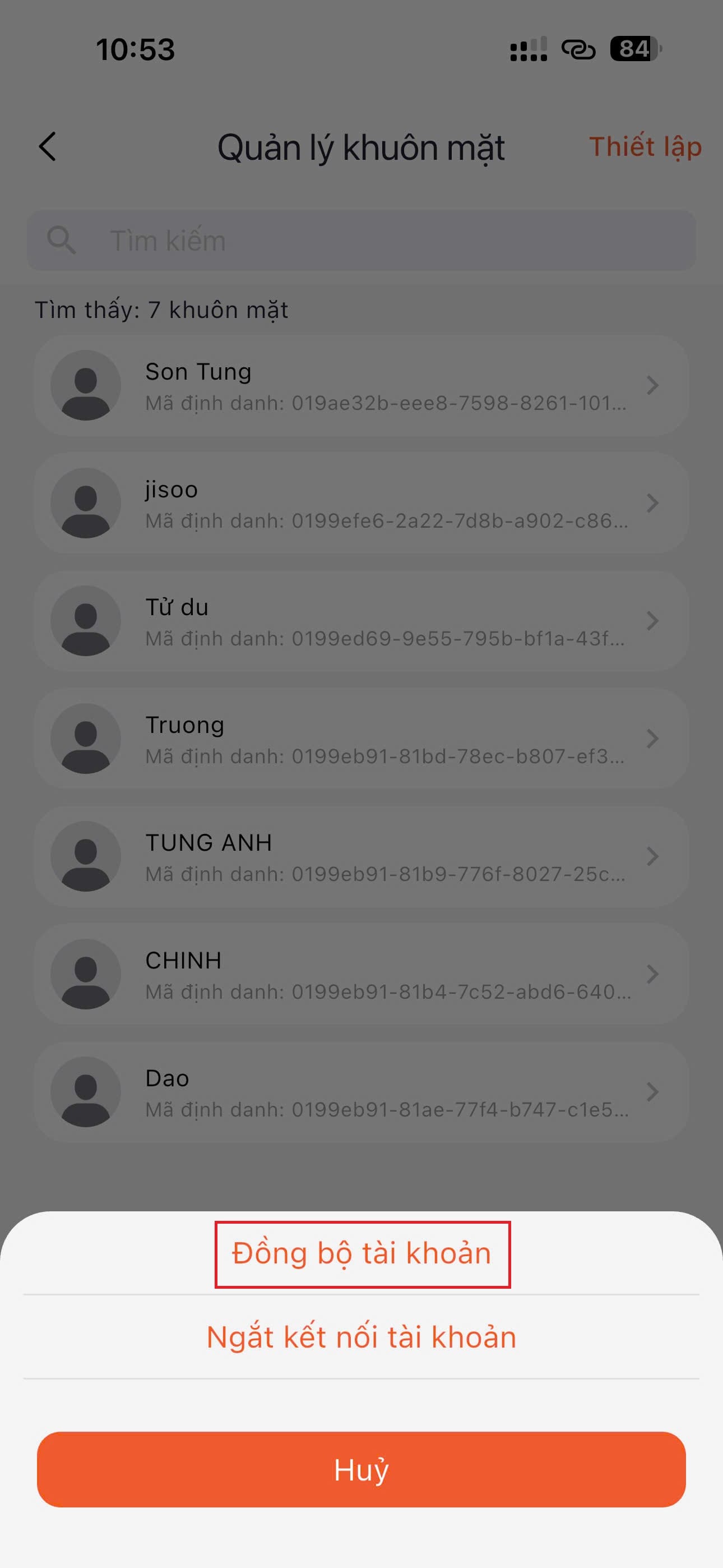 B3: Đồng bộ faceID trên app Javis