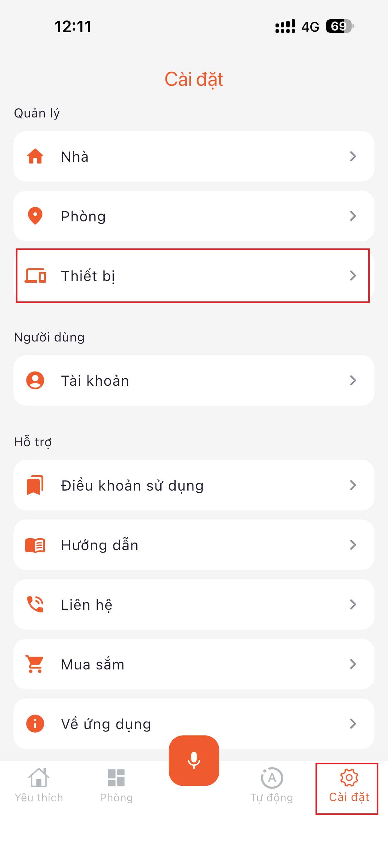 Vào "Cài đặt" -> "Thiết bị"