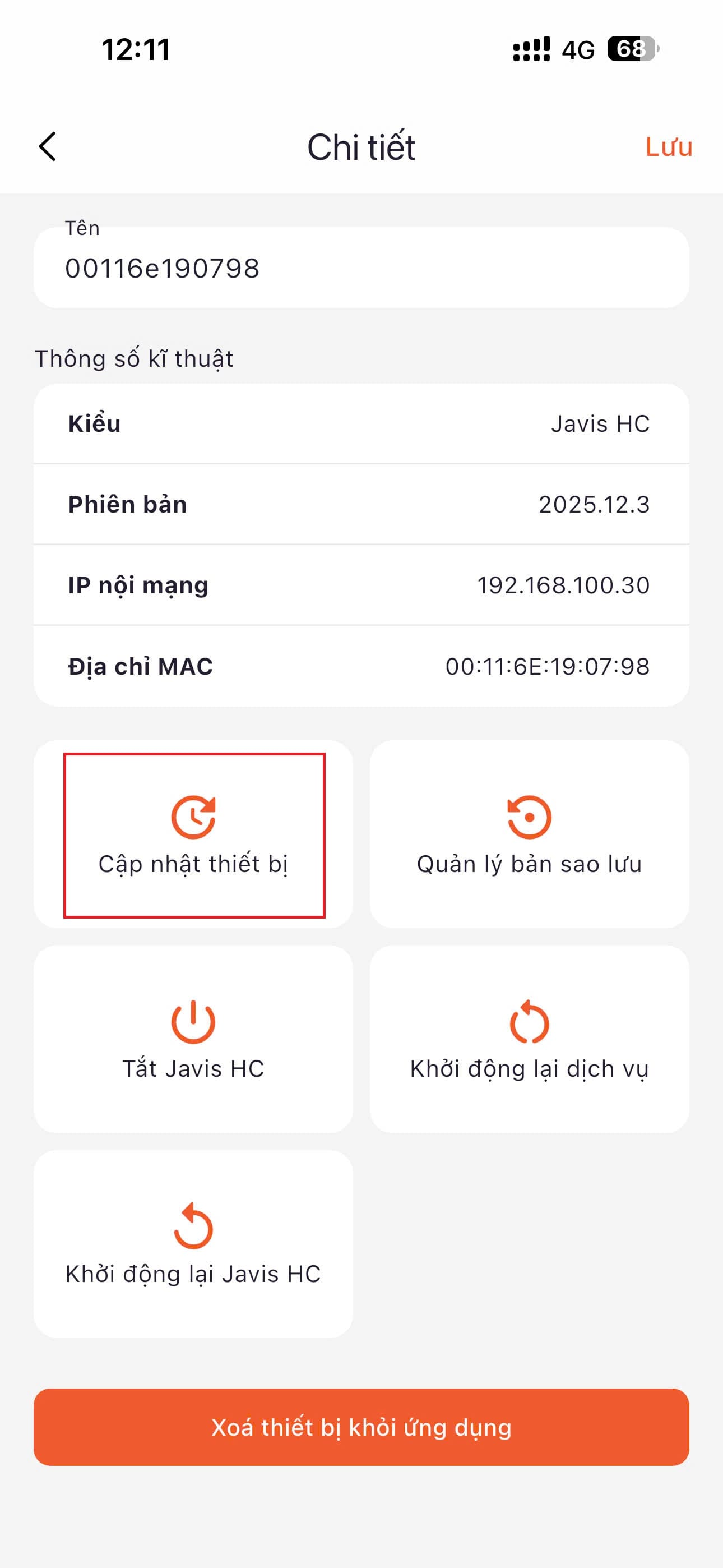 B7: Cập nhật thiết bị