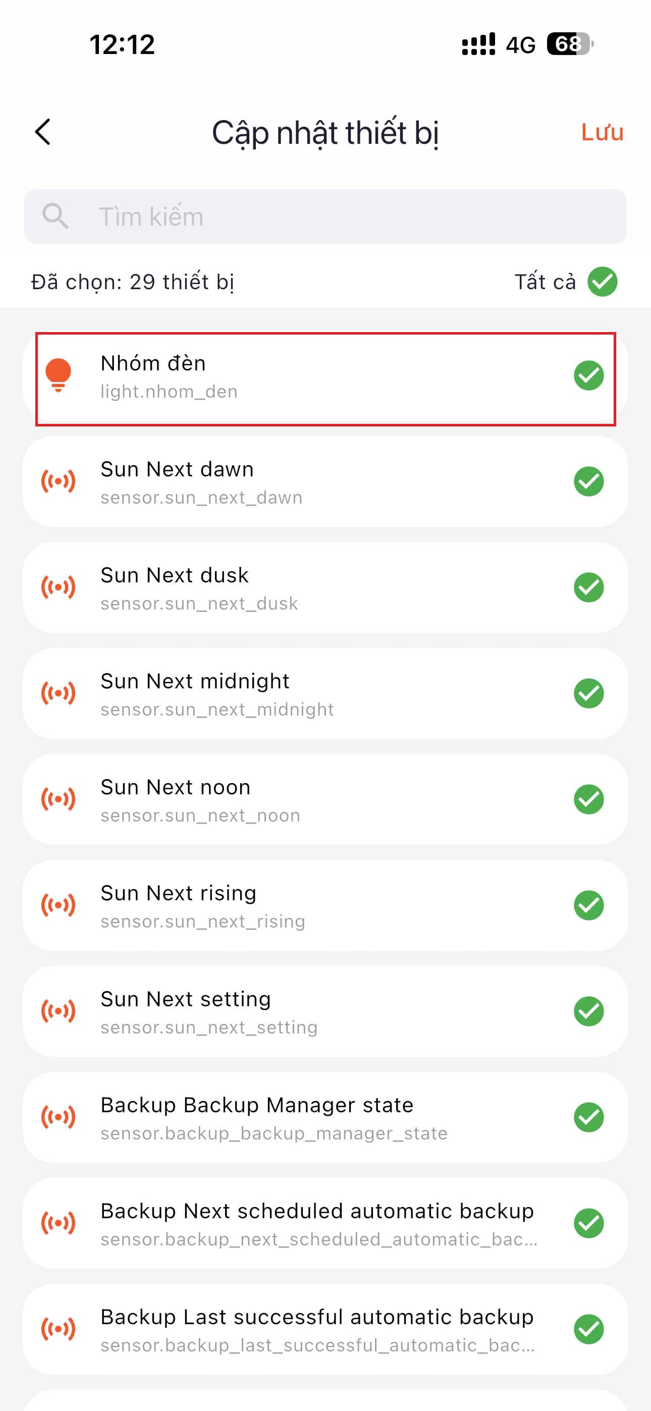 B8: Tìm nhóm đèn vừa tạo, tích chọn và lưu