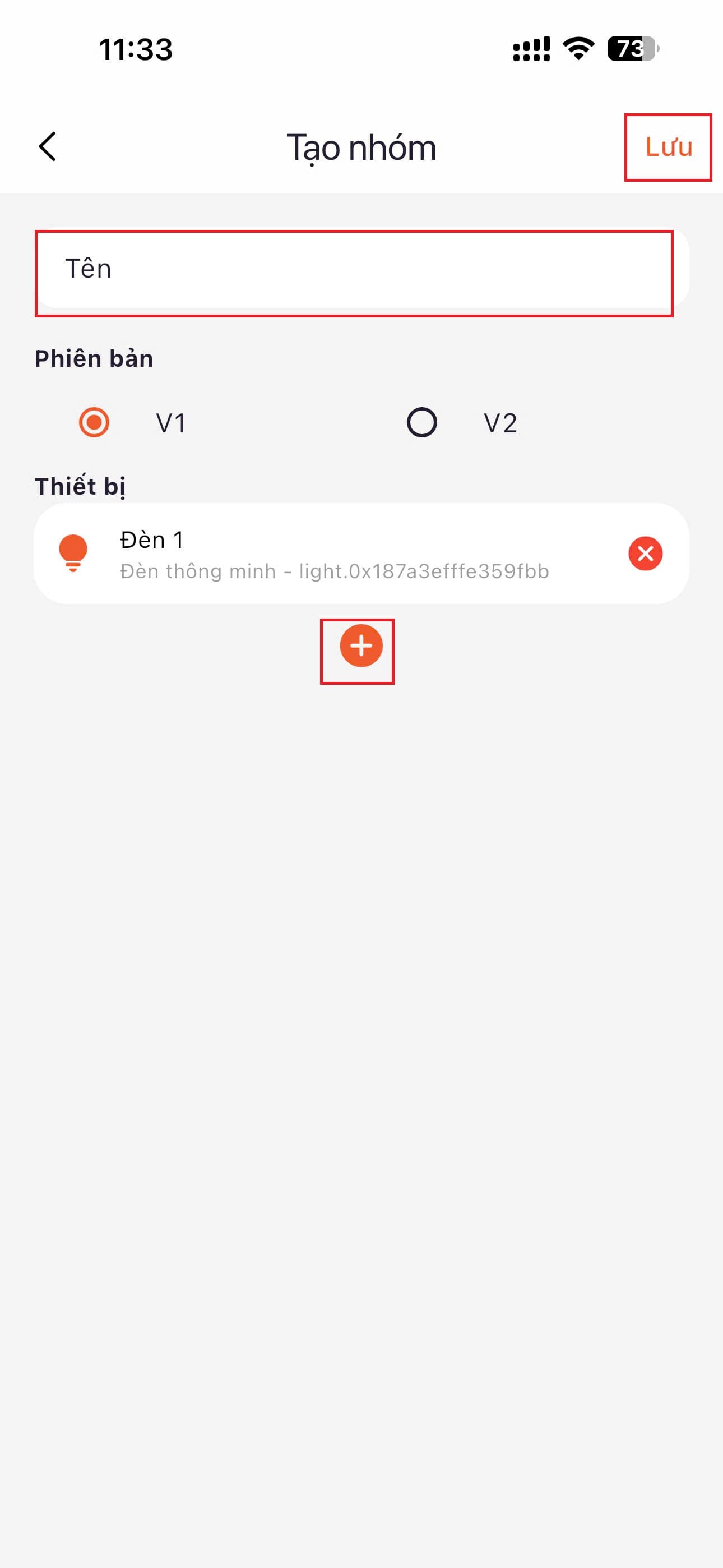 B4: - Chọn "+" để thêm đèn vào nhóm