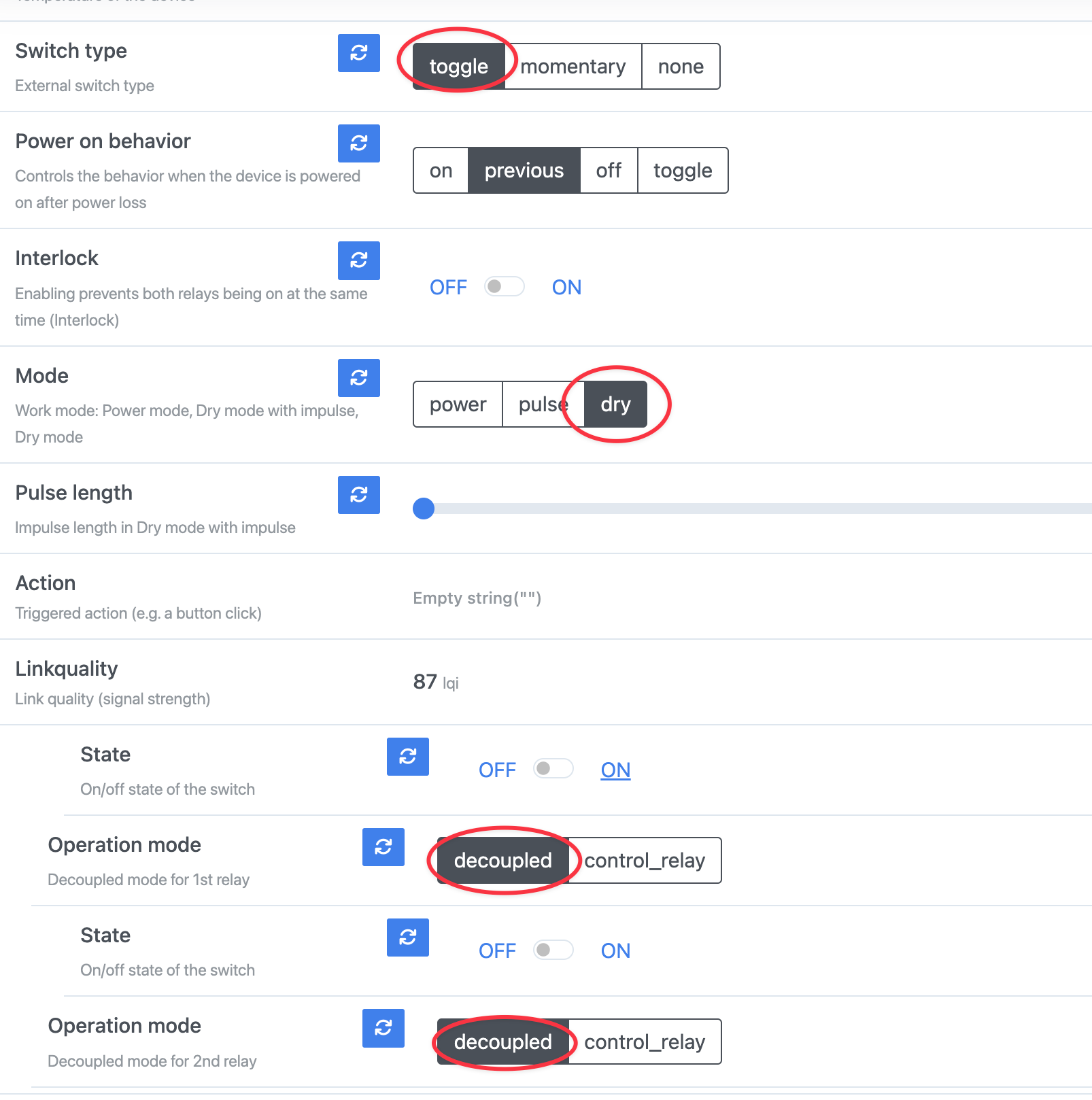 Khi áp dụng cấu hình này có thể dùng cho mục đích kết nối 2 cảm biến dạng ON/OFF cơ thông thường (ví dụ như cảm biến cửa có dây có tiếp điển NO/NC, cảm biến khói có ngõ ra NO/NC ..) để thành cảm biến thông minh. Đồng thời, 2 kênh đầu ra có thể dùng để đóng ngắt các relay như công tắc, máy bơm.. hoặc dùng để đóng mở motor rèm có hỗ trợ tiếp điểm khô.